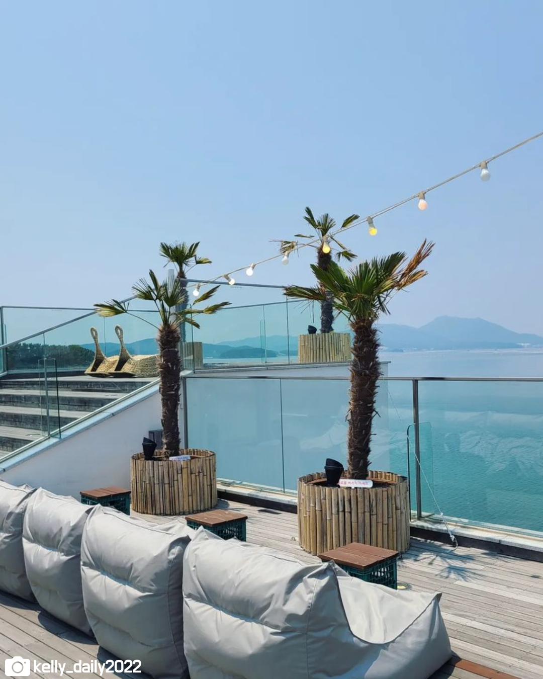 바다 위에 떠있는 듯한 카페에서